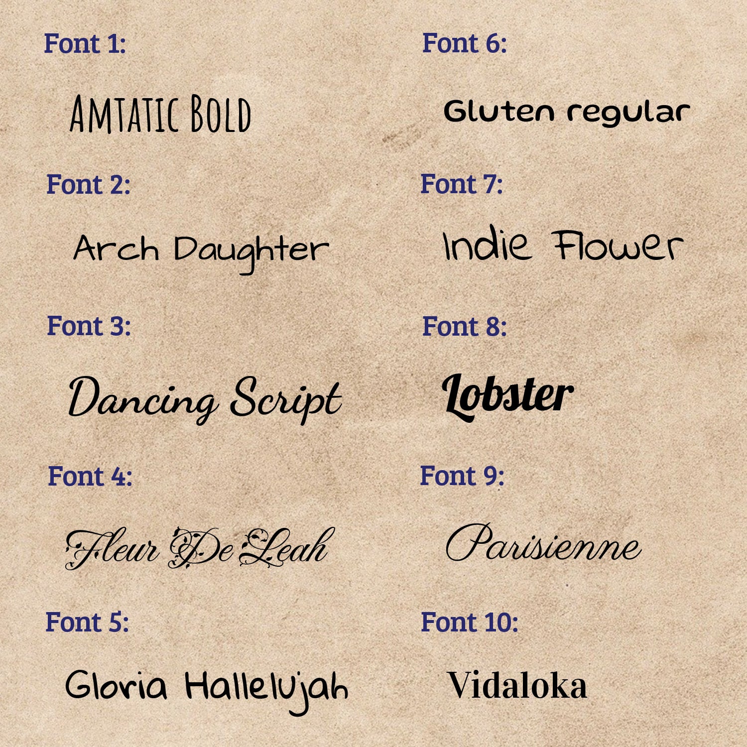 - Choisis une police de caractères pour le nom (voir modèle de police).