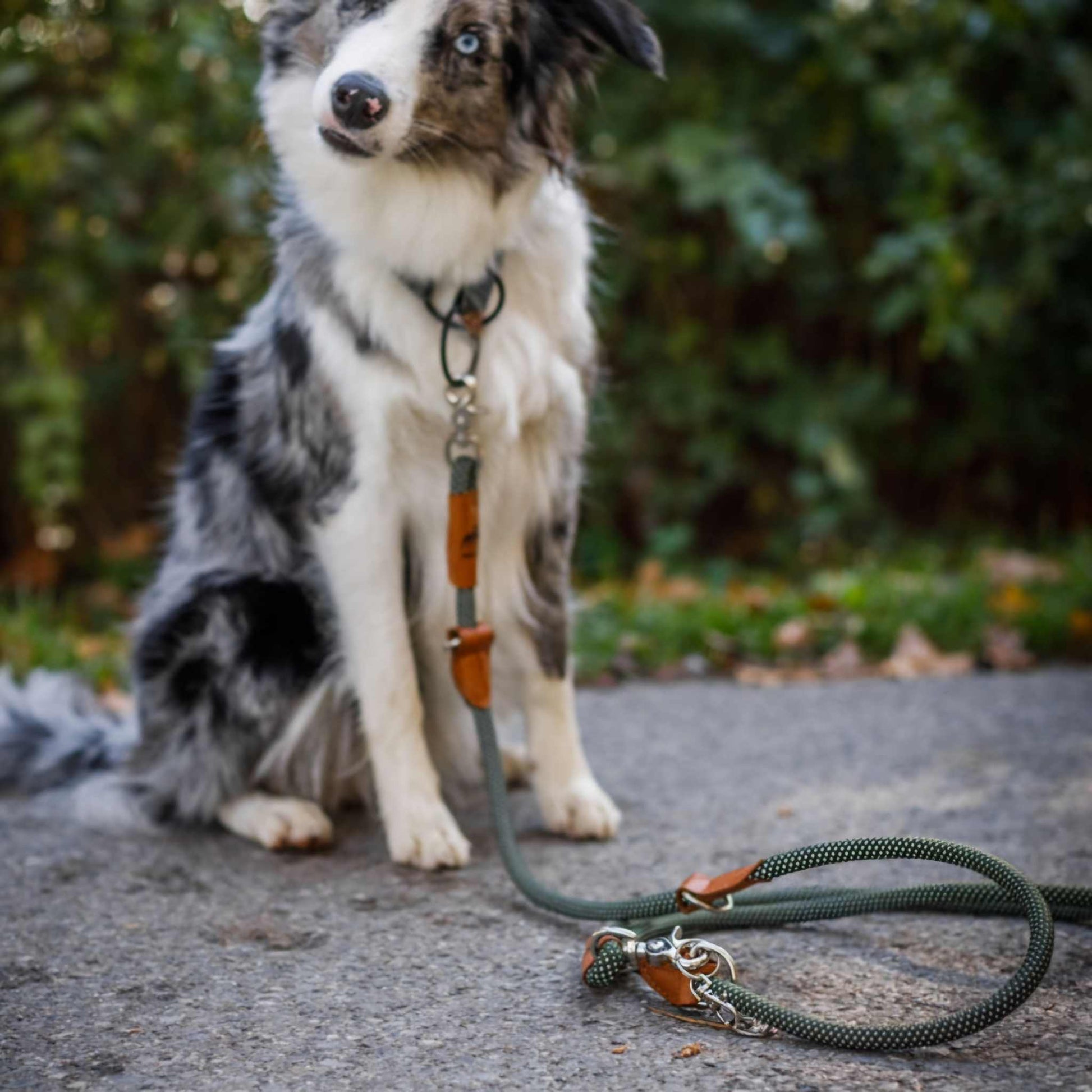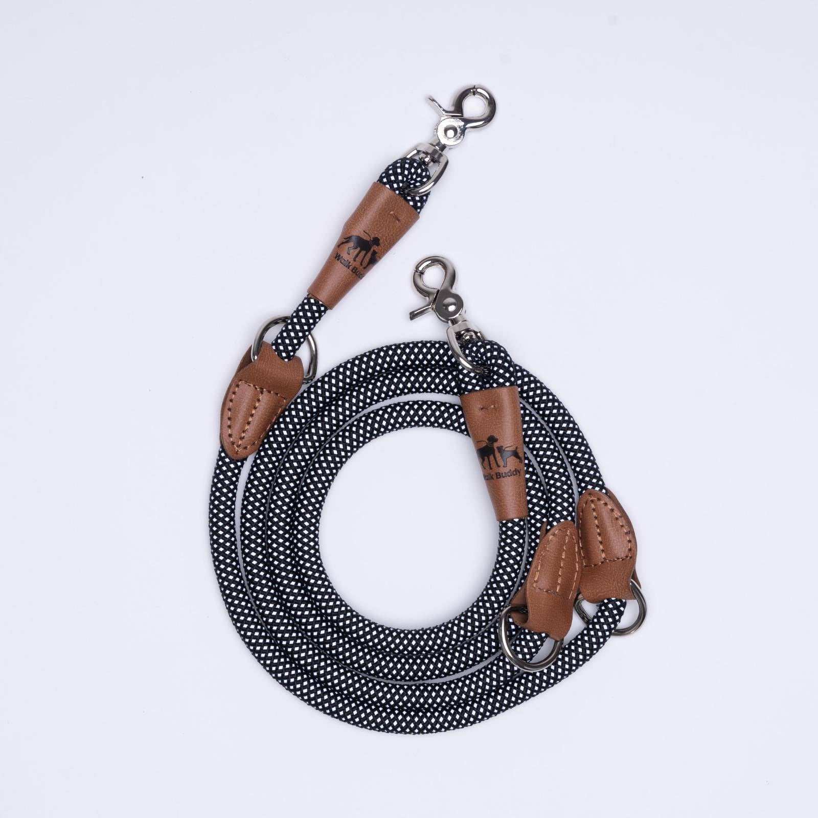 Dank des zweiten Karabiners kann die Leine verkürzt oder gekoppelt werden.